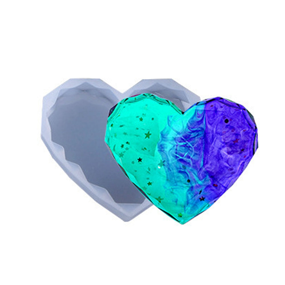 Heart shaped flat faceted mold. ~66mm x 76mm x 13mm, inner diameter: 50mm x 70mm.
