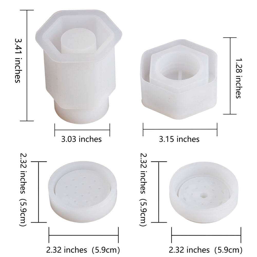 Hexagonal prism & flat round storage container silicone mold set (4 pieces)