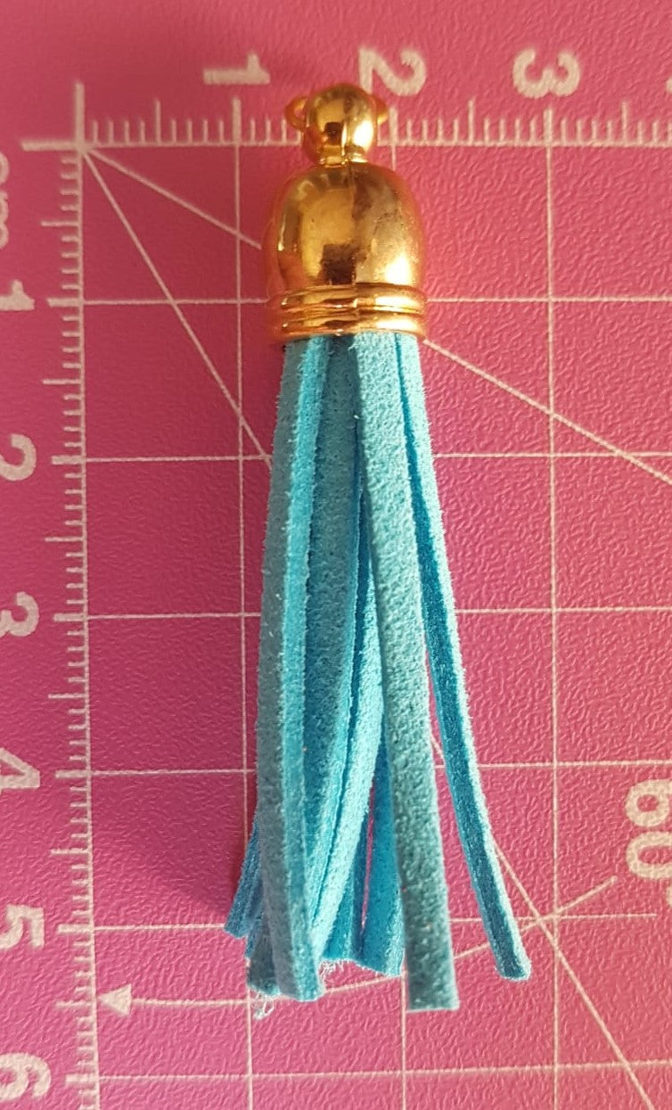 Unique handcrafted tassel range proudly made in SA. Select style and colour required. 5cm long/1cm wide. Suede tassel.