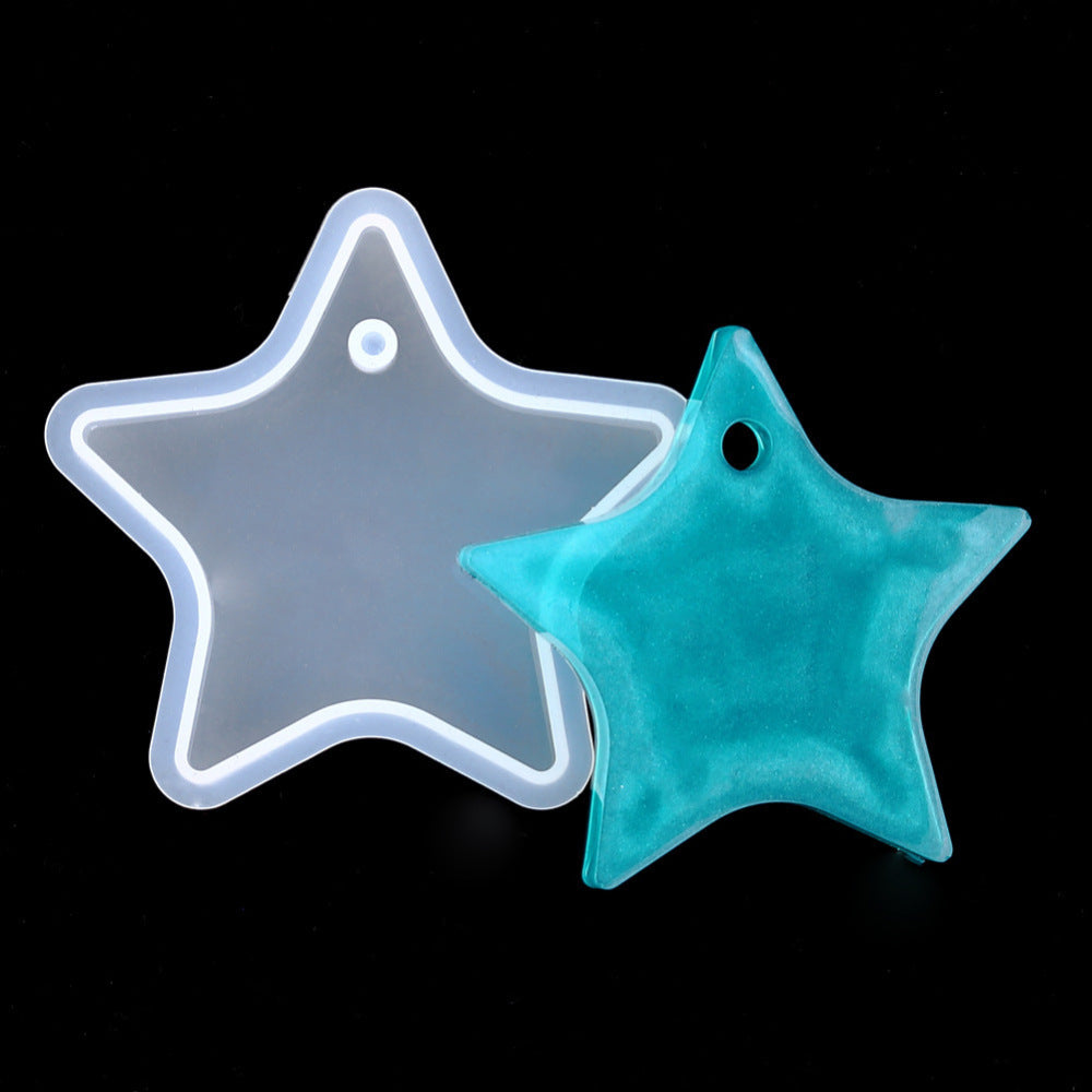 Star shaped pendant mold, 69mm x 57mm x 12mm, hole: 5mm.