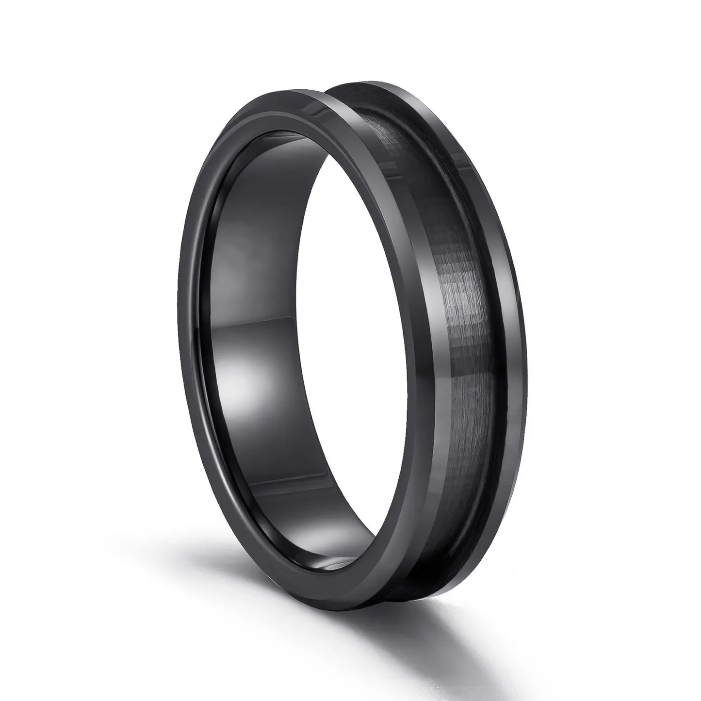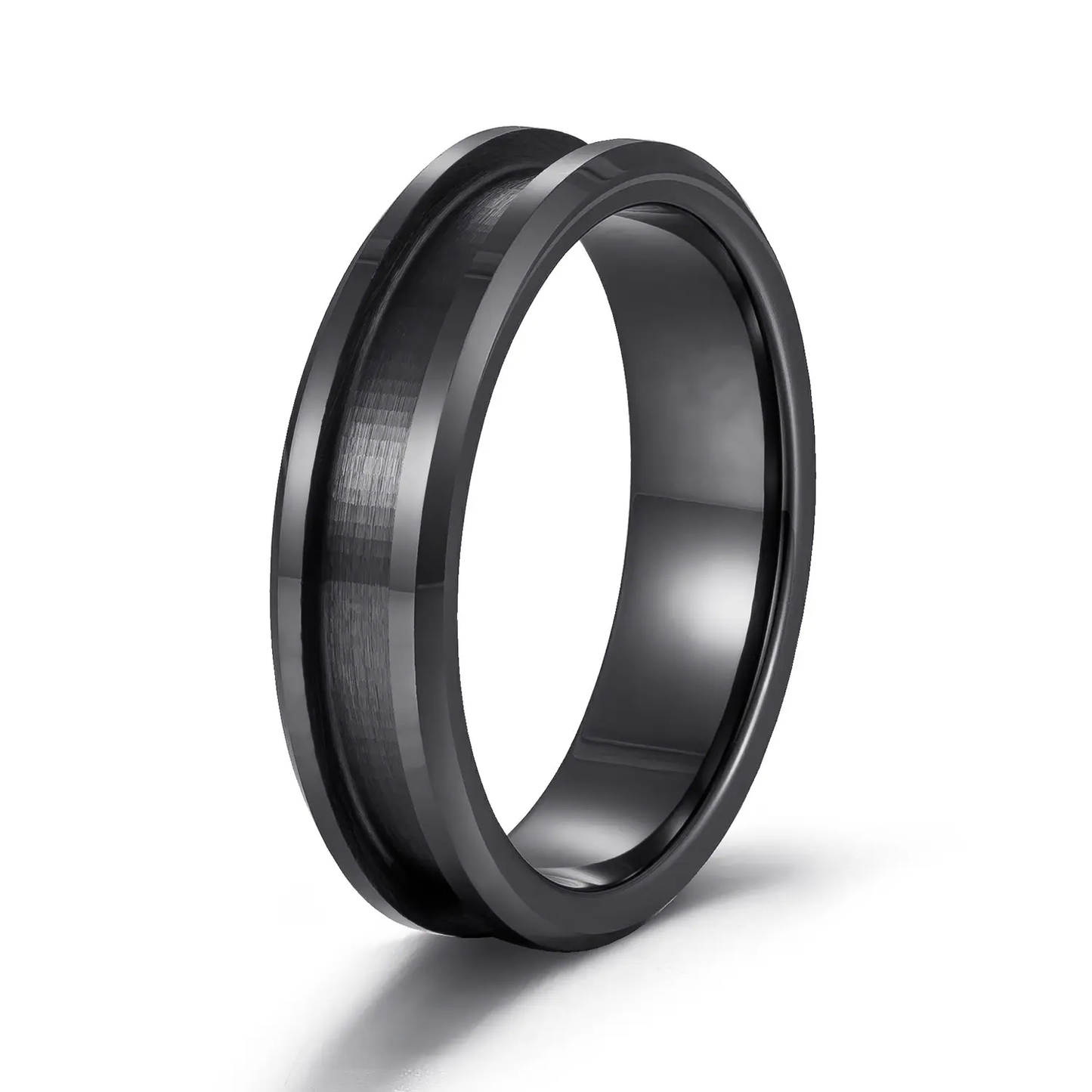 Zirconia black ceramic single channel inlay ring core 6mm. Select required size (US).